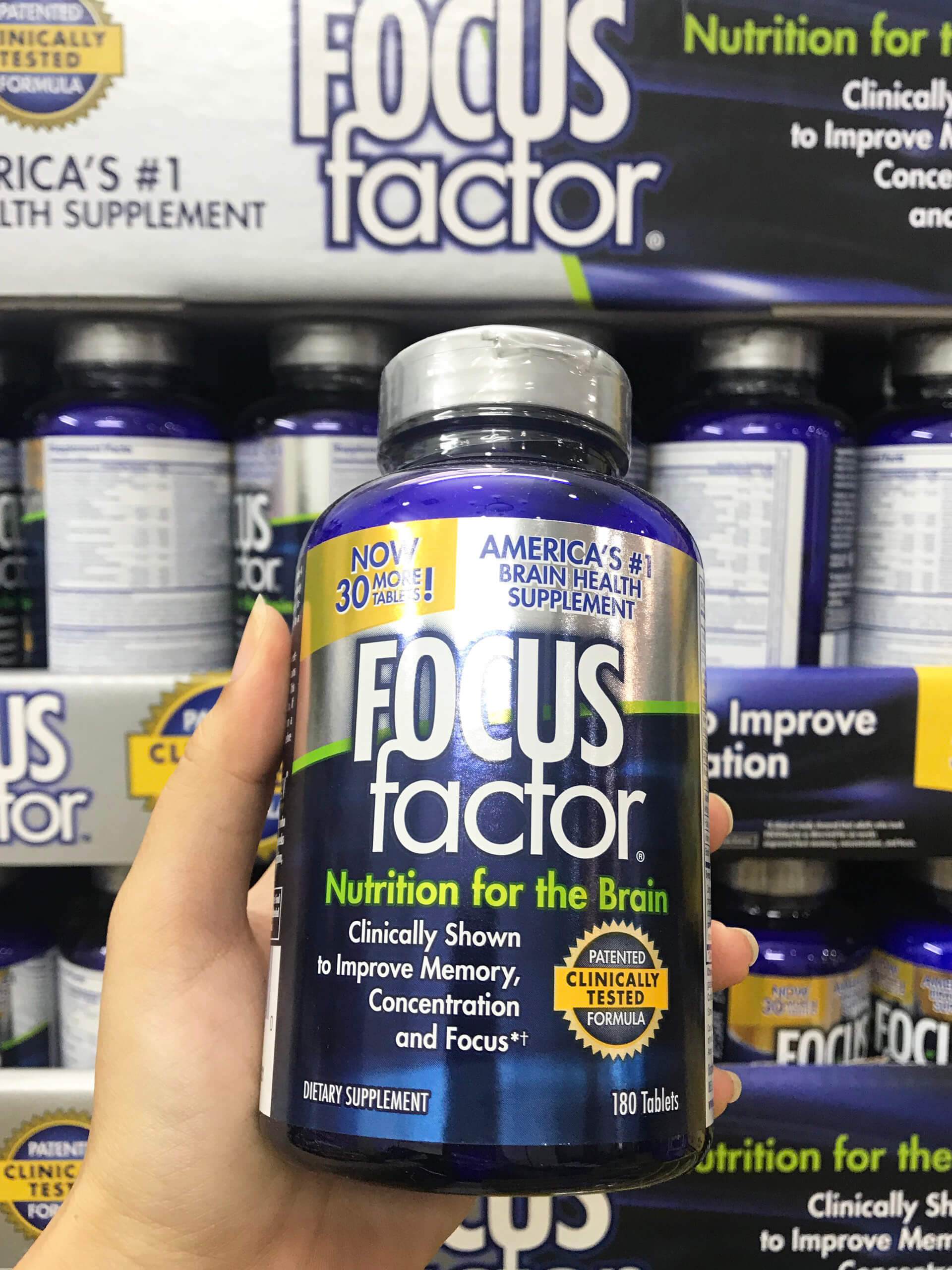 Focus Factor – Nhãn hiệu hàng đầu của Mỹ về chăm sóc sức khỏe cho bộ não, giúp tập trung và tăng cường trí nhớ hiệu quả, cải thiện tối đa chức năng của bộ não sau những chấn thương, làm tăng sự tập trung thích hợp cho học sinh luyện thi và người già, hỗ trợ người sau tai biến,..Viên uống bổ não Focus Factor là tổng hợp một chế độ ăn uống đầy đủ bao gồm các loại vitamin, khoáng chất, chất chống oxy hóa, chất chiết xuất thực vật và các chất khác cần thiết đảm bảo cho cơ thể hoạt động tốt
